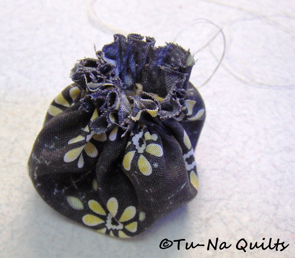 Continue pulling until the opening is almost closed.