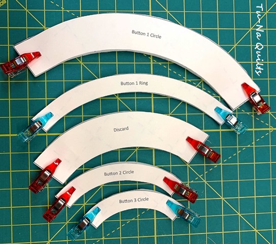 9. Make it easy. I found that the inner rings of the small and medium button were 1/2″ from the edge of the circles and the larger ring was 7/8″ from the edge of the circle.