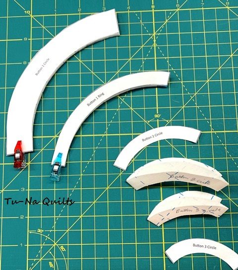 5. Choose button fabrics that will contrast well. This pattern uses the wrong side of the fabric for the ring portion. Check it out to make sure you will have good contrast or choose another fabric to use for the ring. Solids and batiks do not have the contrast necessary to achieve the look that pattern calls for.